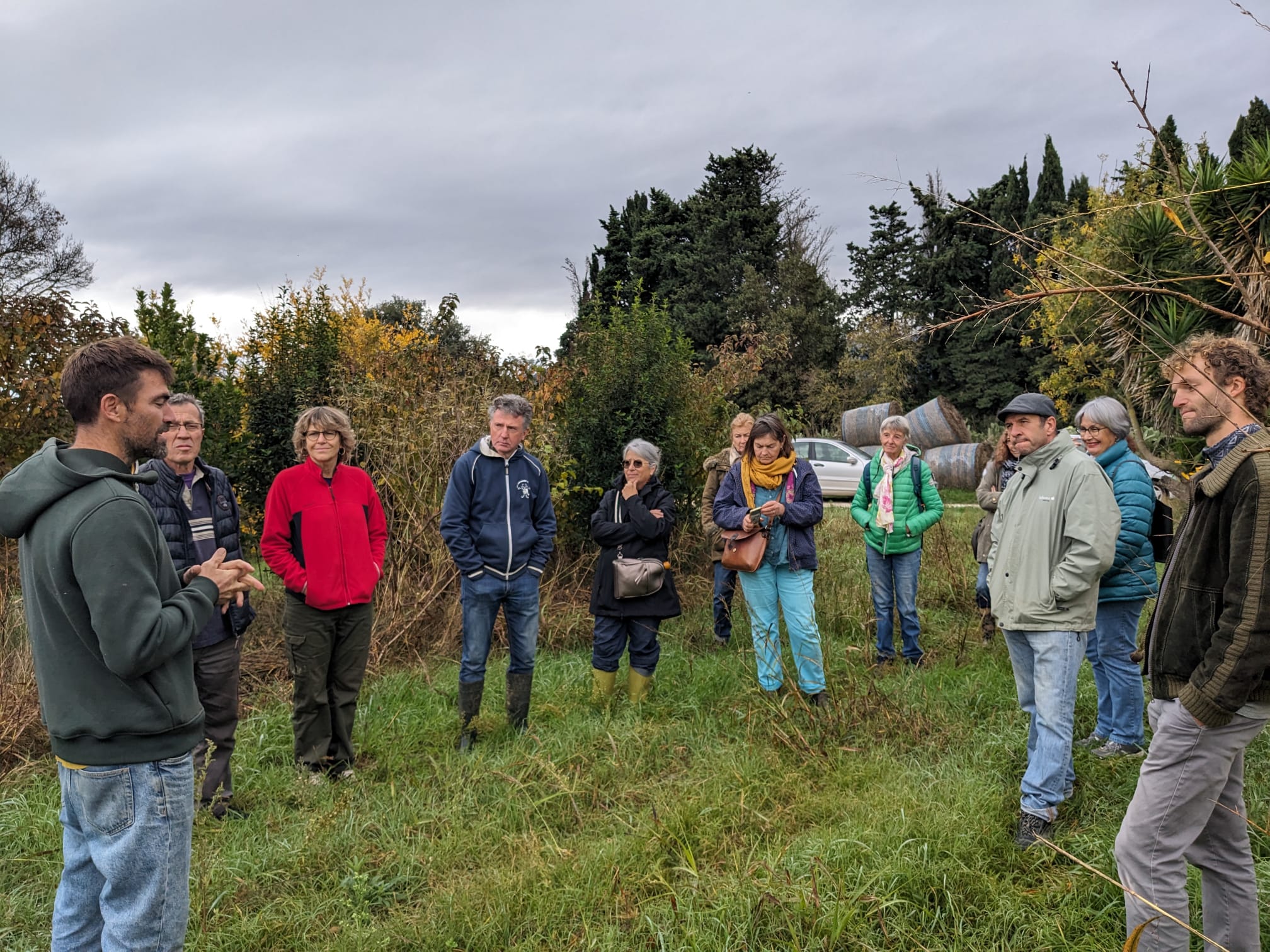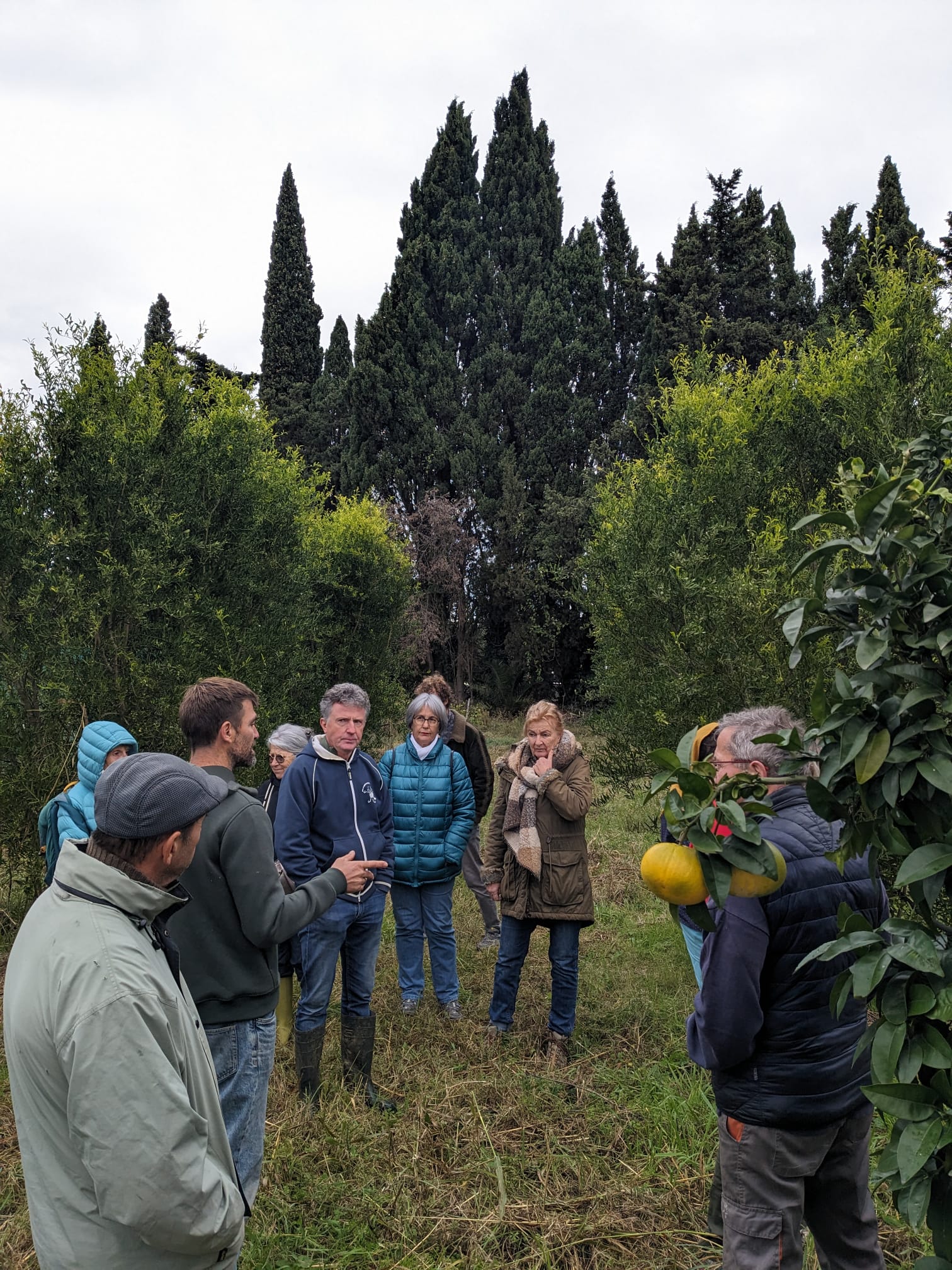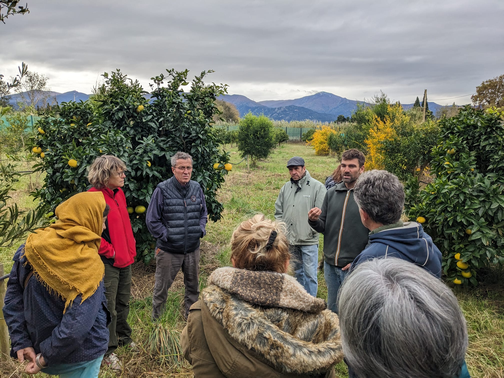 Visite du Domaine de la Mer Blanche. Découverte et échanges autour des notions d'agroécologie, d'agroforesterie et de couverts végétaux grâce à l'expertise de Fréderic Bey, Arboriculteur à Argelès-sur-Mer.